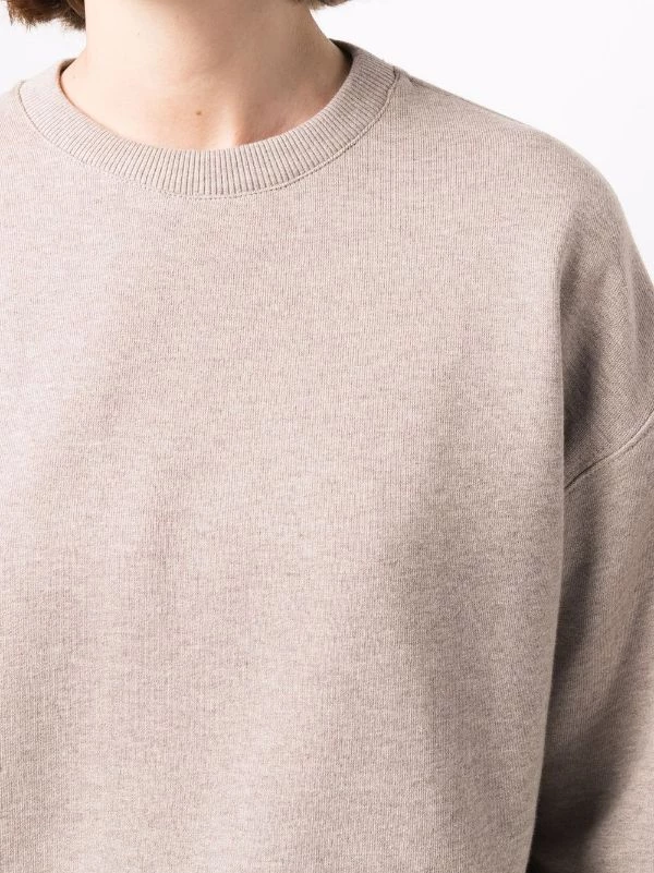 Encolure ronde, épaules tombantes, manches longues, ourlet nervuré. Matière : coton.