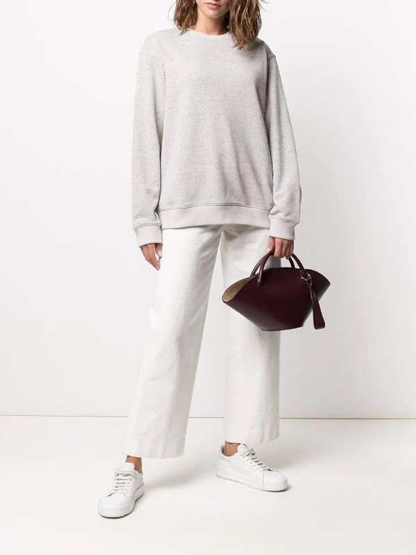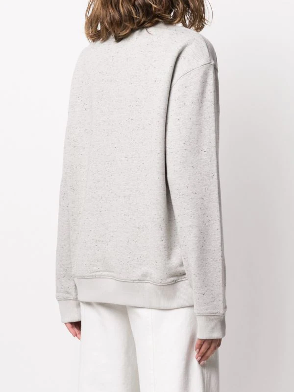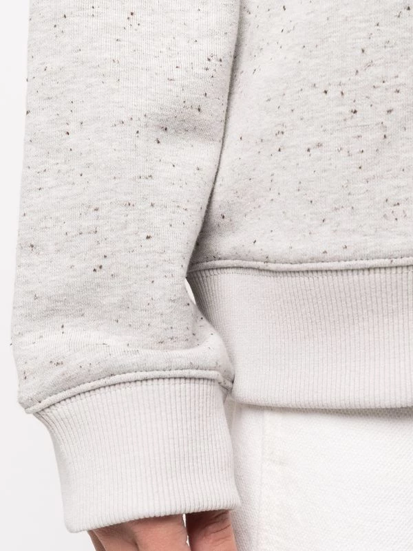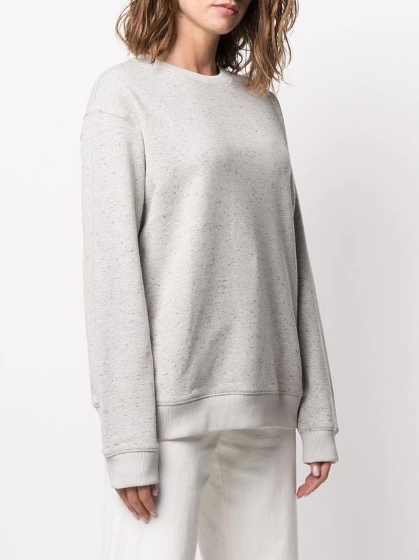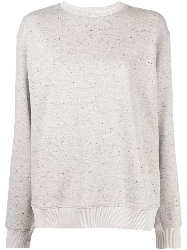 Maille mouchetée, encolure ras du cou, manches longues, ourlet droit. Matière : coton mélangé.