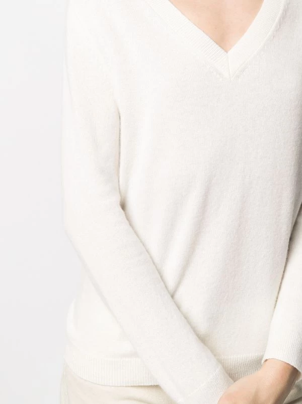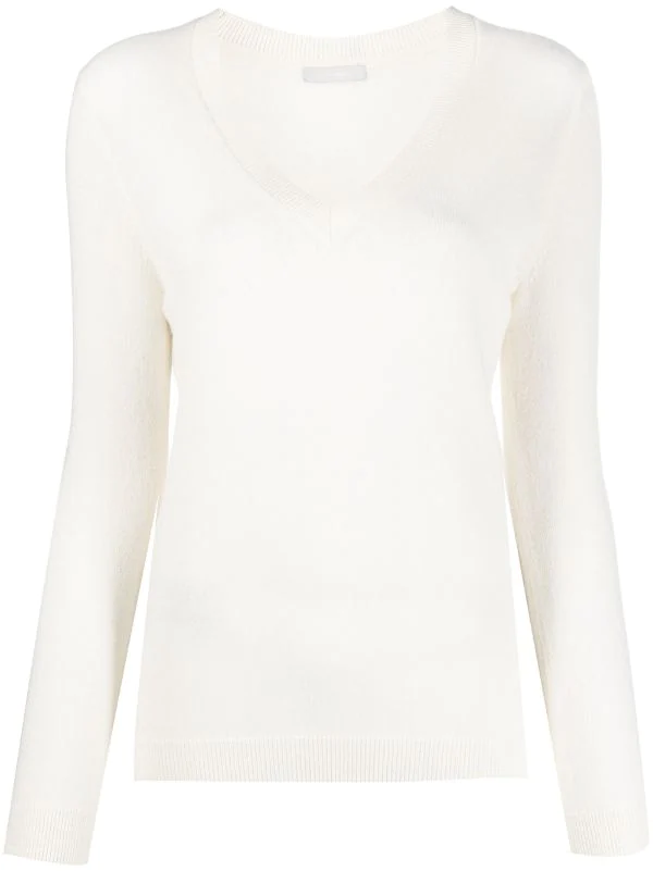 Bord en maille côtelée, col v, manches longues, ourlet droit. Matière : cachemire.