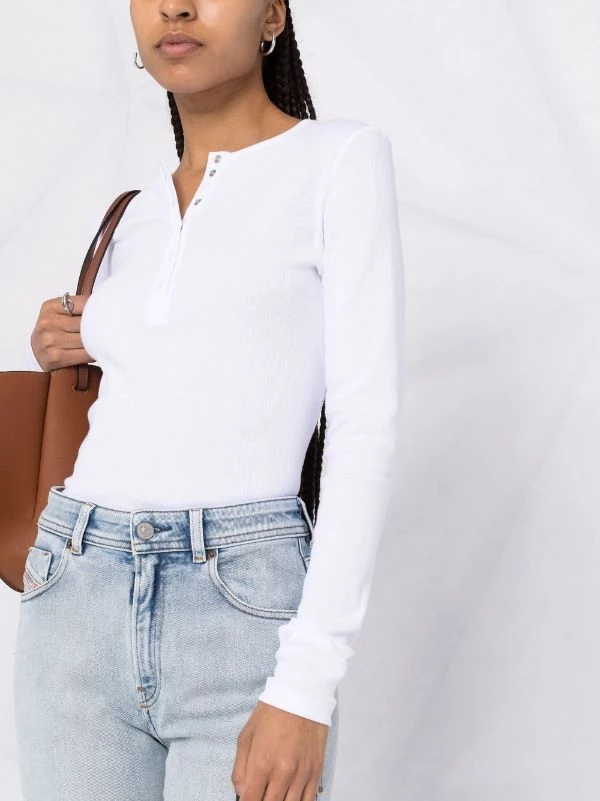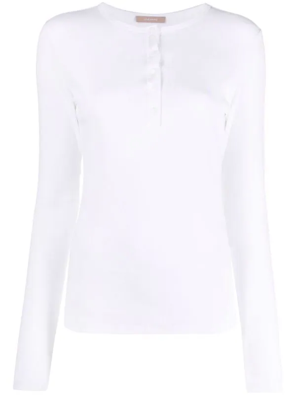 Encolure ronde, boutonnière dissimulée sur le devant, manches longues, ourlet droit. Couleur : blanc. Matière : coton.