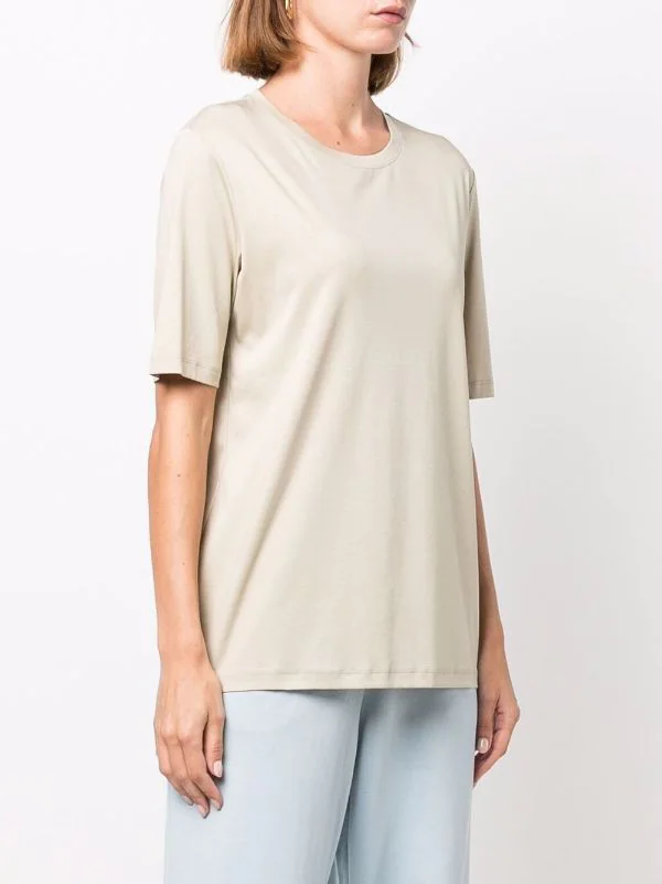Encolure ronde, manches courtes, ourlet droit. Matière : coton.