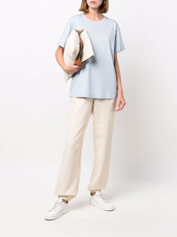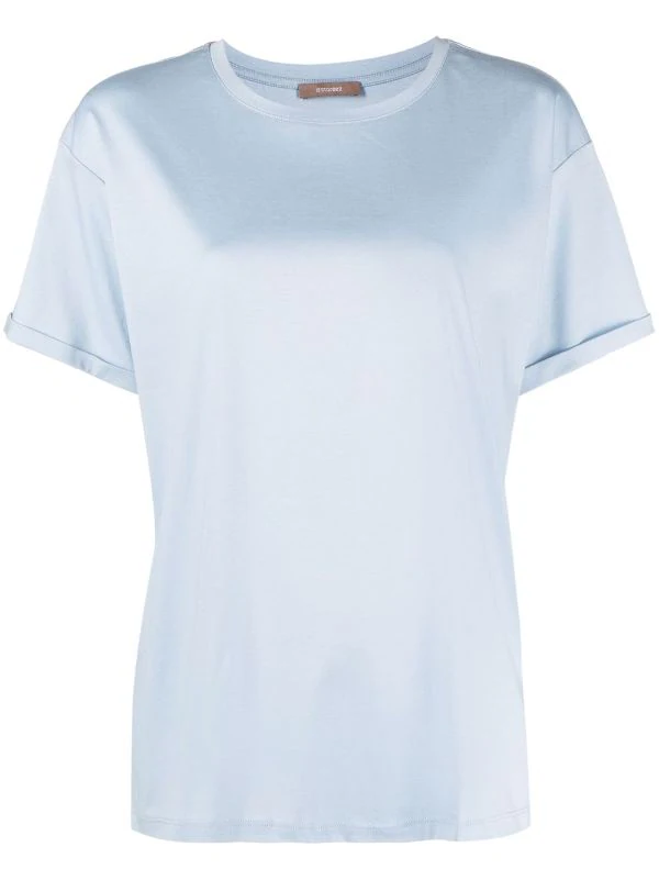 Maille fine, encolure ronde, manches courtes, ourlet droit. Matière : coton.