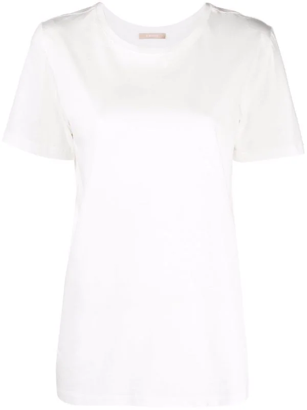 Blanc ivoire, coton, encolure ras du cou, manches courtes, ourlet droit.