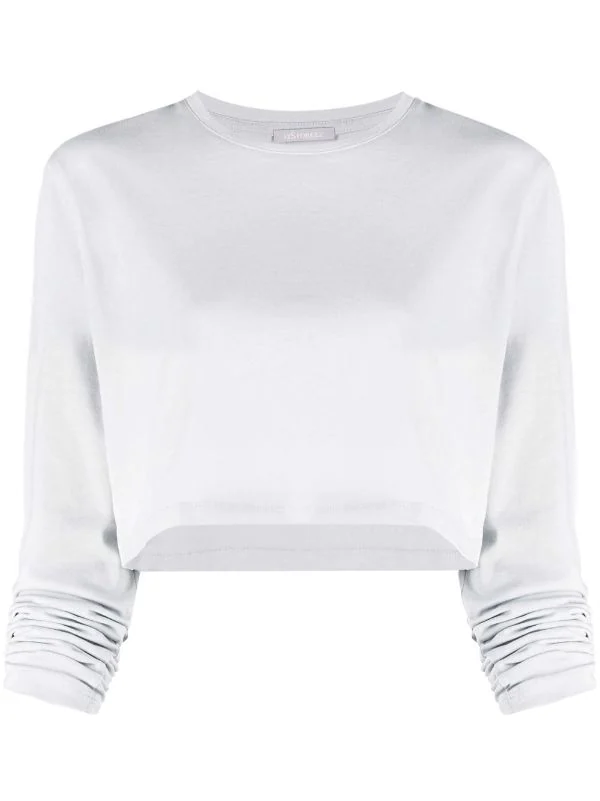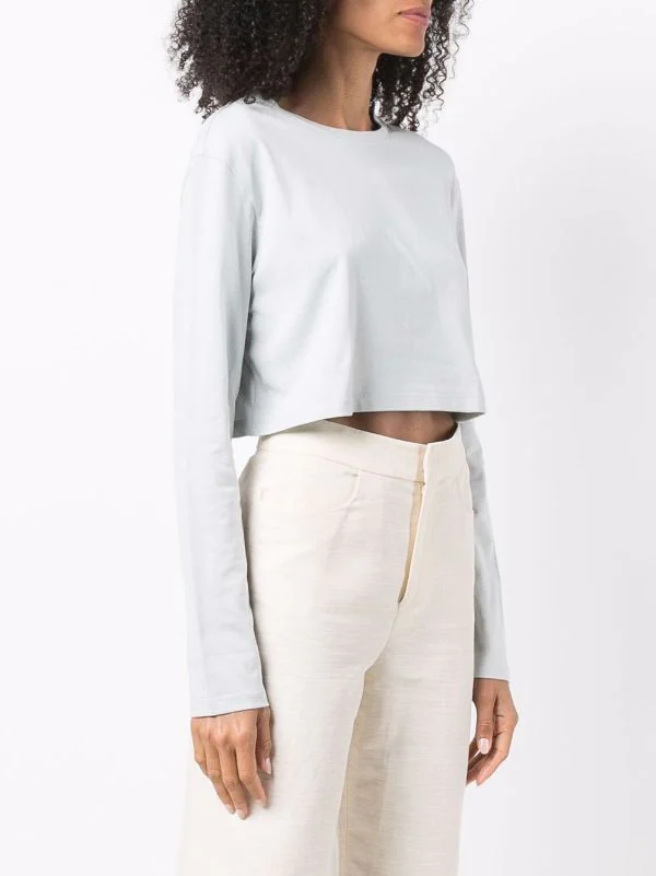 Encolure ras du cou, manches longues, coupe courte, ourlet droit. Matière : coton.