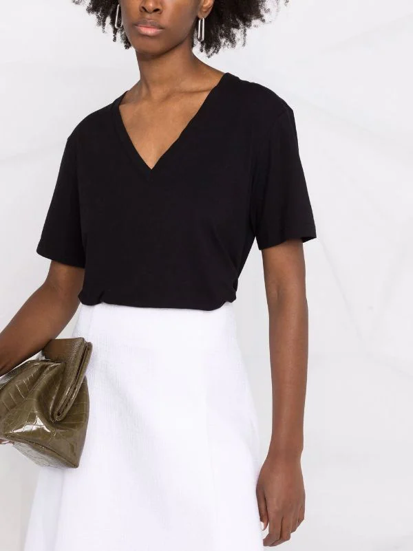Col v, manches courtes, ourlet droit. Couleur : noir.