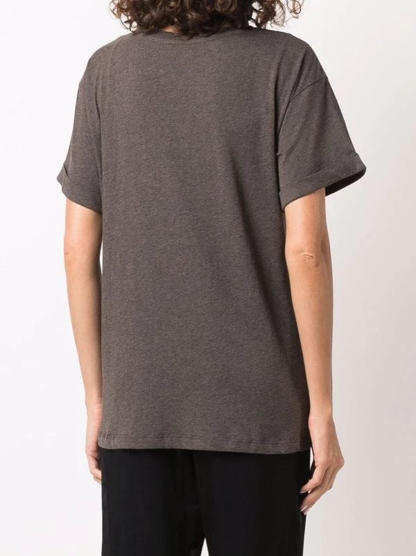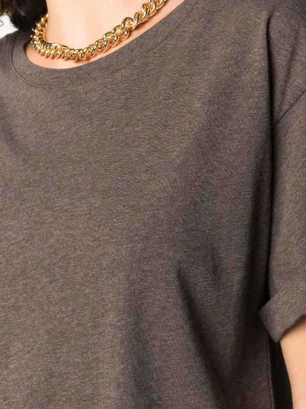 Encolure ras du cou, manches courtes, ourlet droit. Couleur : marron. Matière : coton.