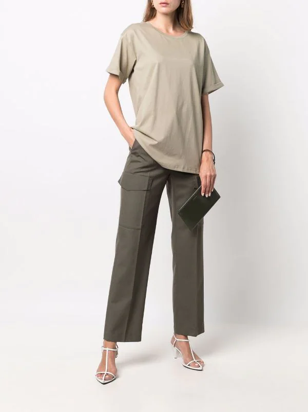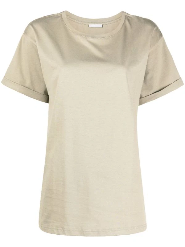Encolure ronde, effet d’épaules descendues, manches courtes, ourlet droit. Matière : coton.