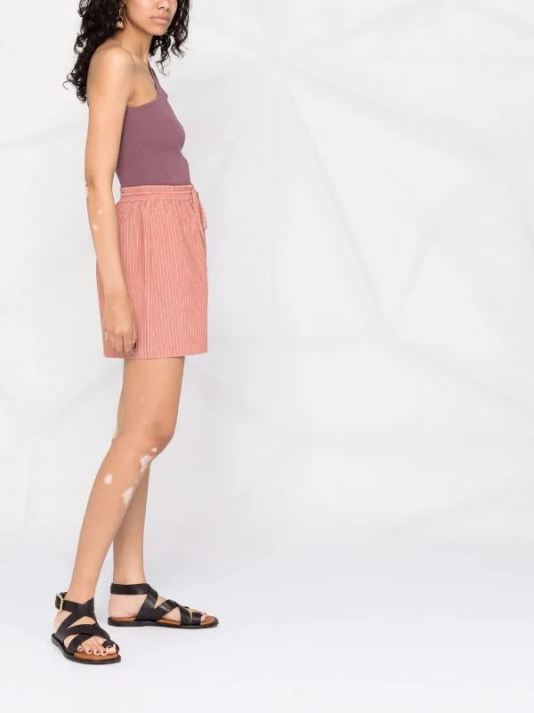 Rayures verticales imprimées, taille à lien de resserrage. Matière : coton.