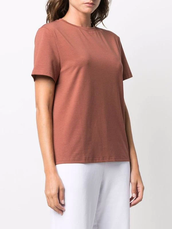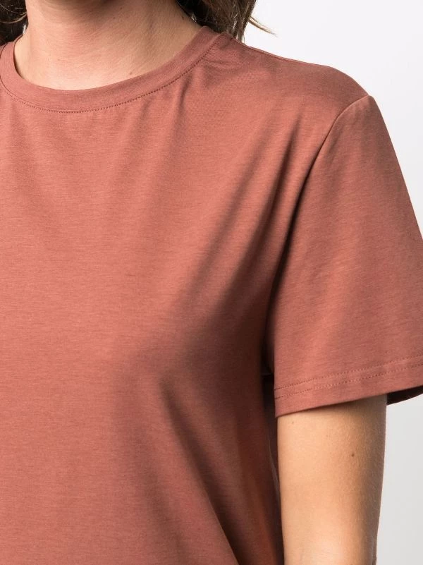 Construction stretch, effet chiné, encolure ronde, manches courtes, ourlet droit.