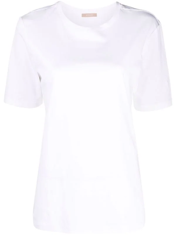 Encolure ronde, manches courtes, ourlet droit. Couleur : blanc. Matière : coton.