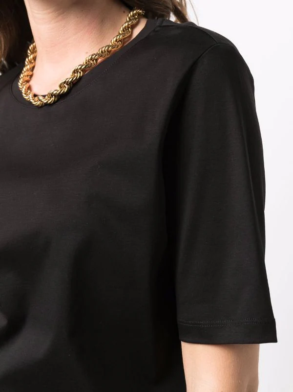 Encolure ronde, manches courtes, ourlet droit, structure légère. Couleur : noir. Matière : coton.