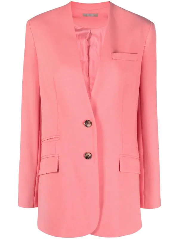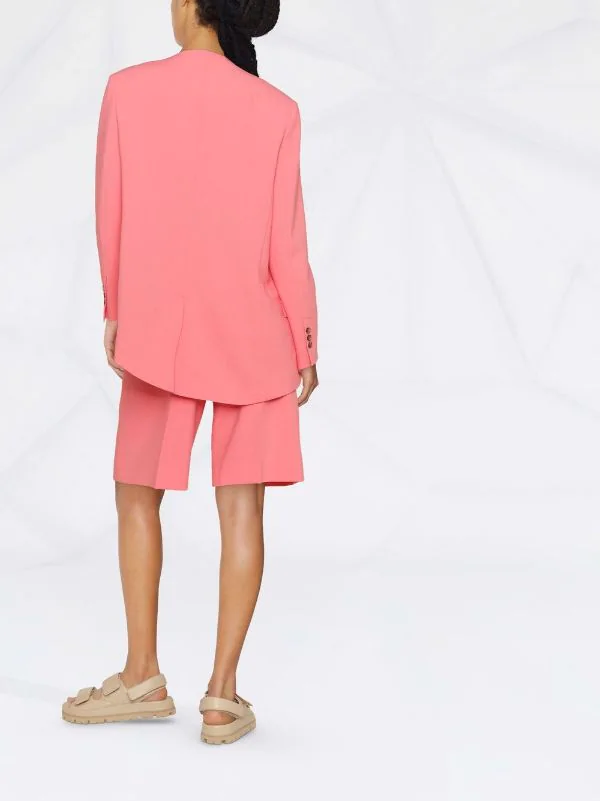 Design sans col, col v, poche passepoilée sur la poitrine, manches longues, boutonnière sur le devant, poche passepoilée devant, deux poches à rabat sur le devant.