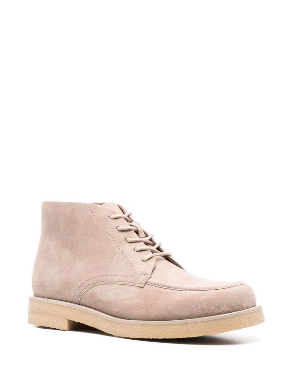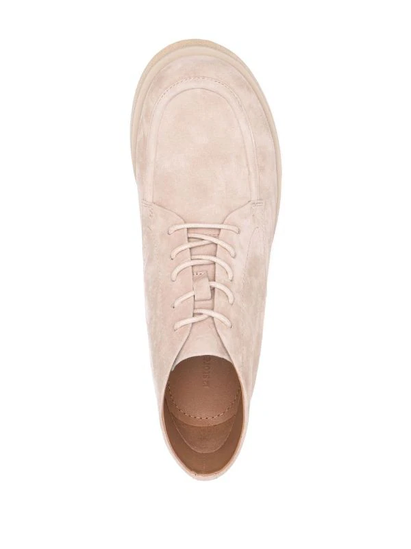 Bout rond, fermeture à lacer sur le devant, petit talon épais, doublure en cuir. Matière : daim.