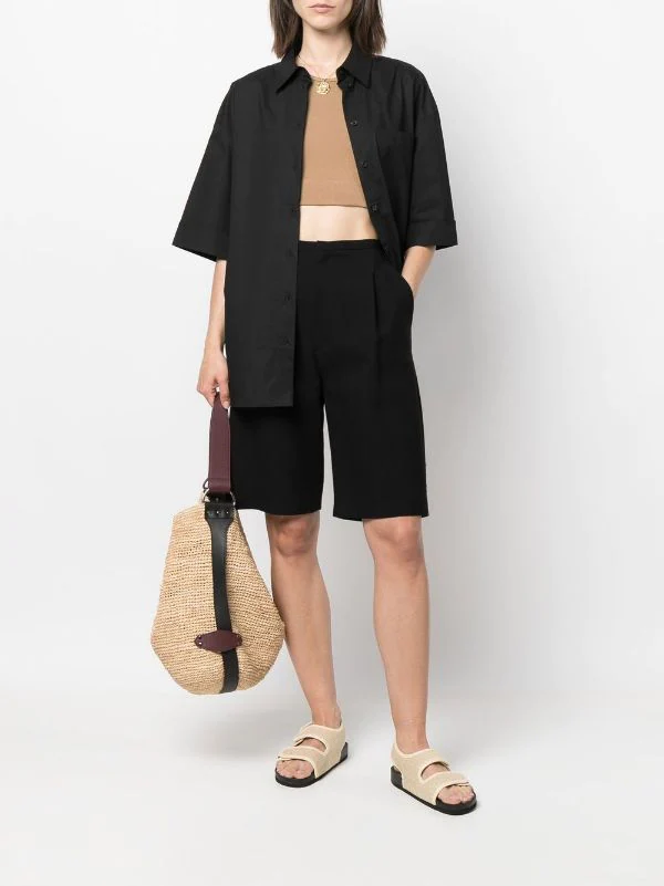 Col classique, boutonnière sur le devant, manches courtes. Couleur : noir.
