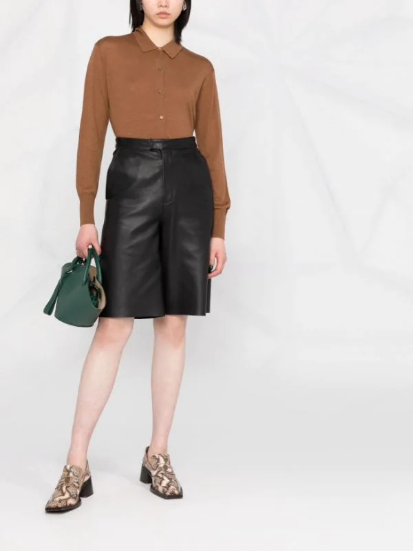 Col pointu plat, manches longues, boutonnière sur le devant, finitions nervurées.