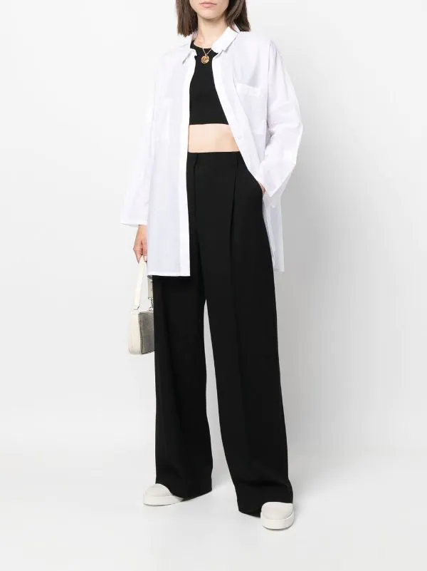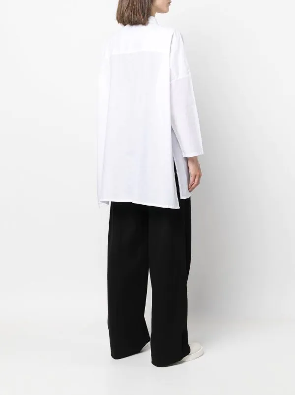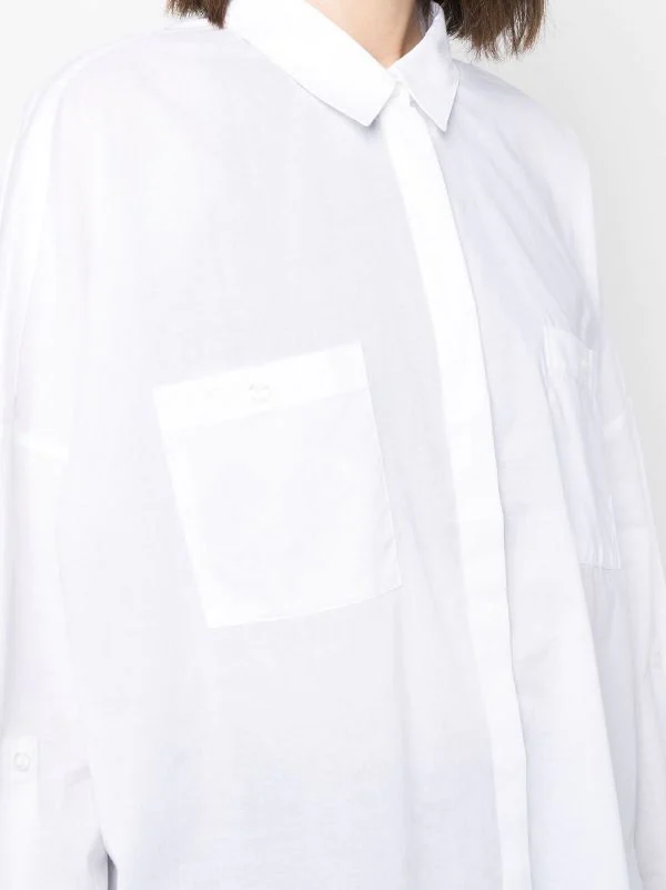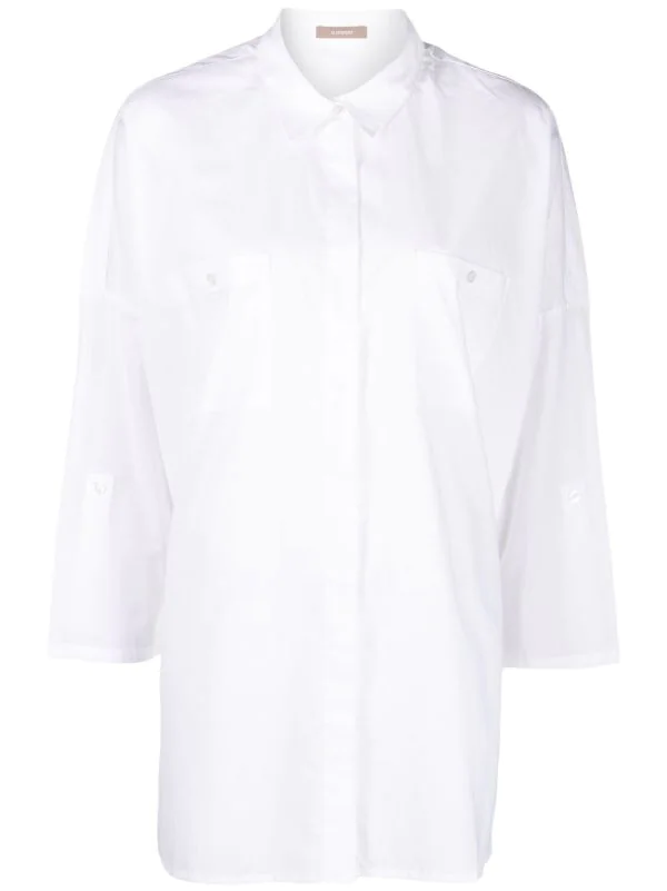 Col classique, boutonnière sur le devant, deux poches plaquées avant, fentes latérales, manches longues. Couleur : blanc. Matière : coton.