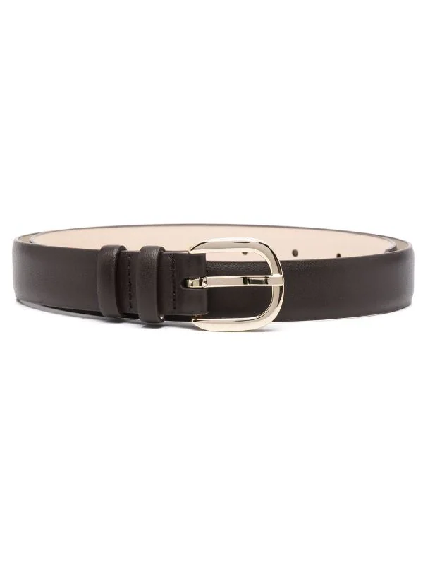 Fermeture à boucle dorée, détails de perforation, taille ajustable. Couleur : noir. Matière : cuir.