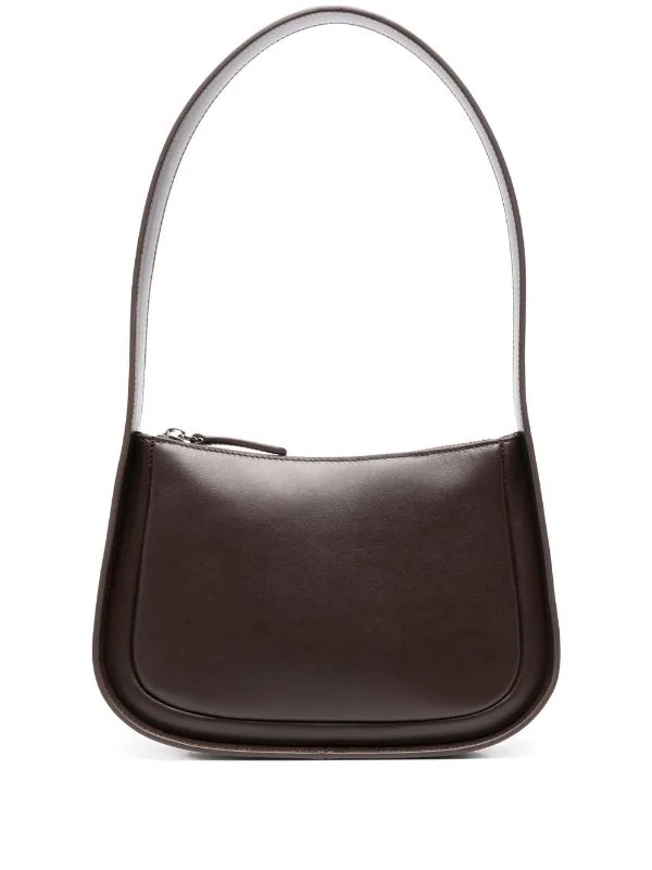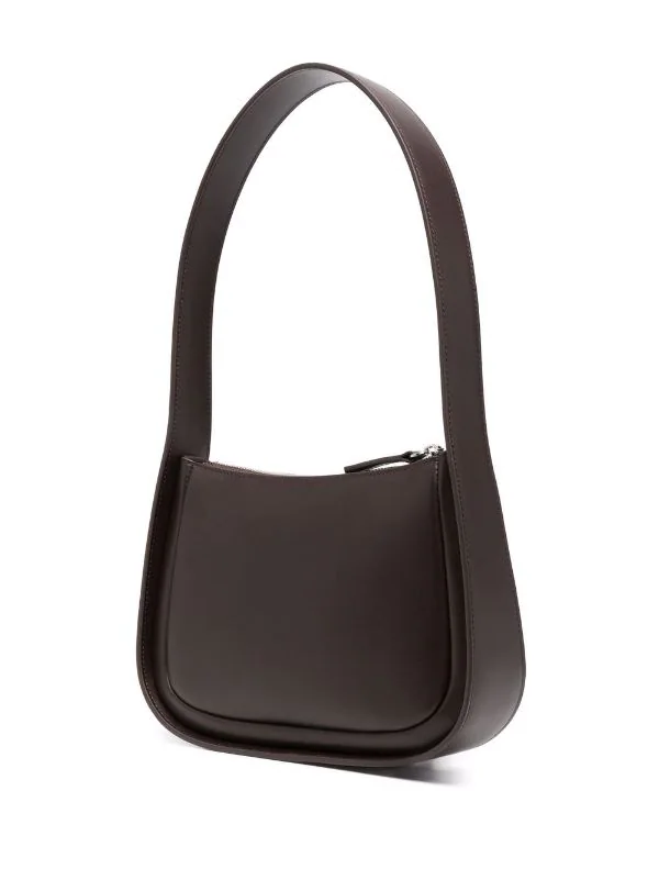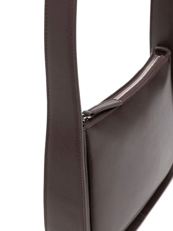 Coins incurvés, anse classique, fermeture zippée sur le dessus, poche intérieure plaquée. Couleur : marron. Matière : cuir.