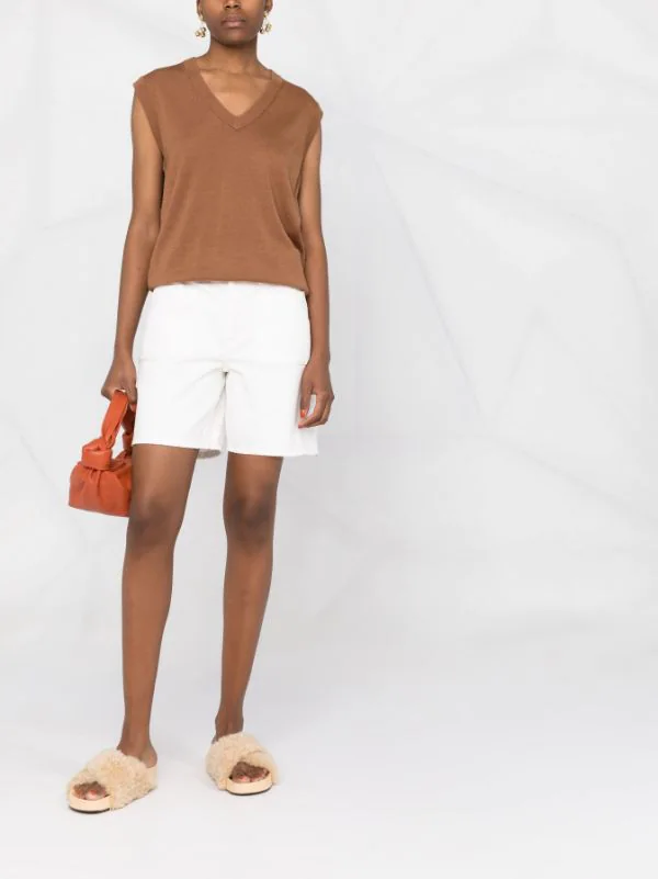 Col v, design sans manches, finitions nervurées.