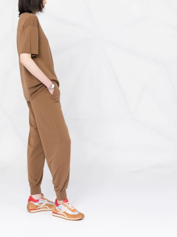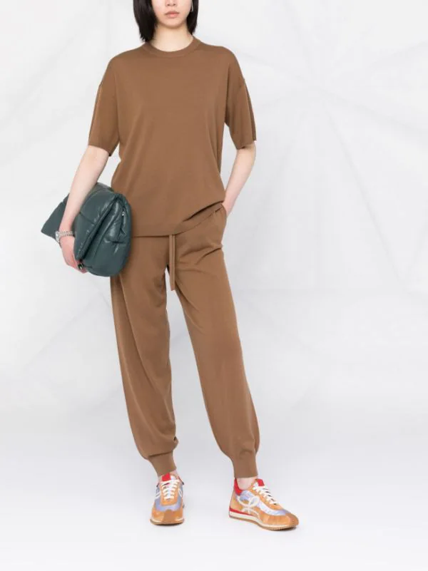 Design en maille, lien de resserrage à la taille, poches latérales fendues, coupe fuselée. Matière : laine mérinos.