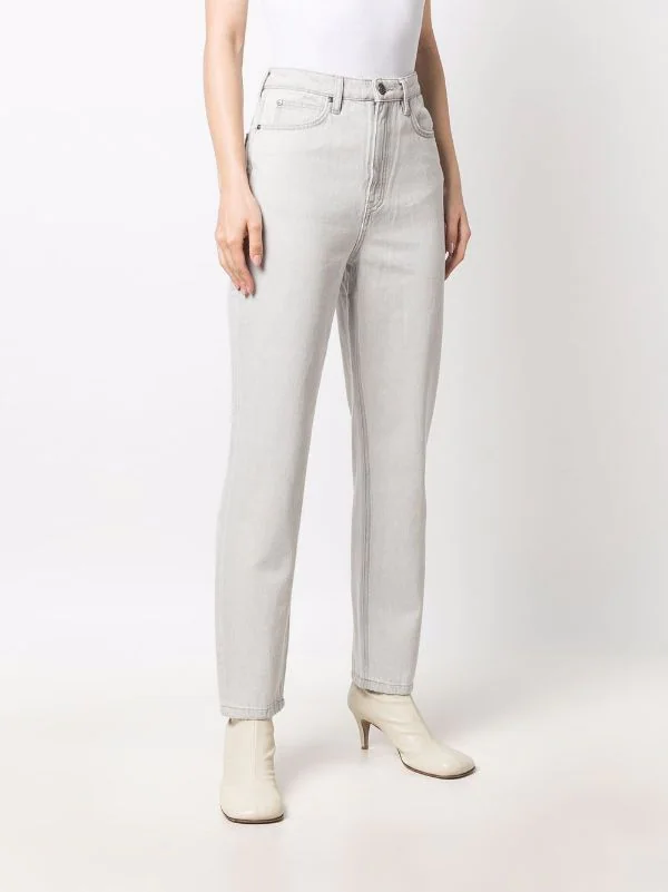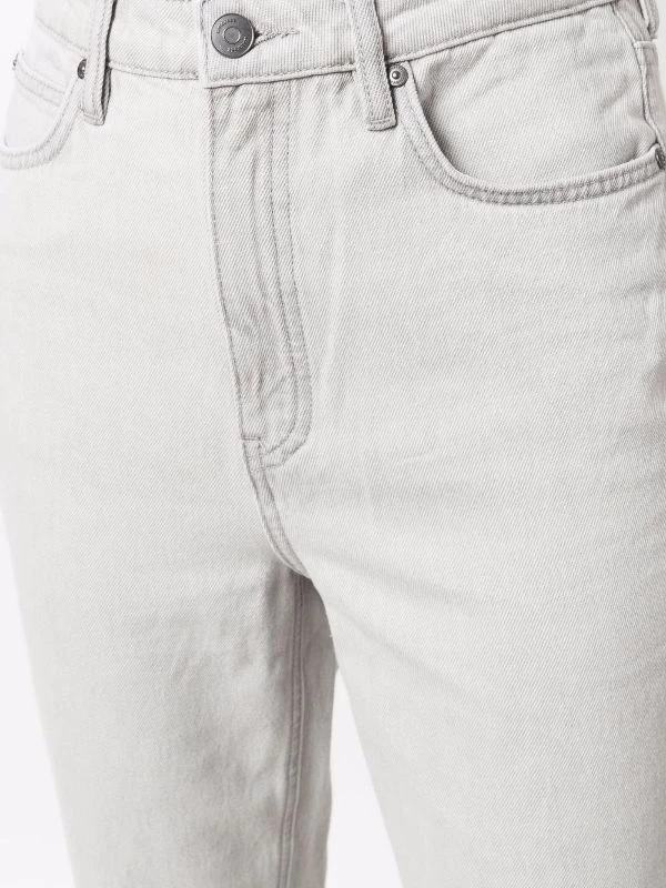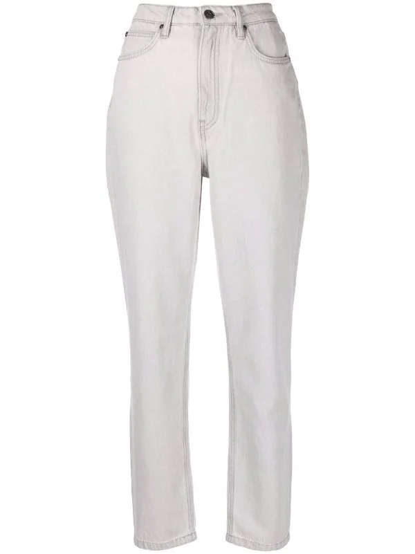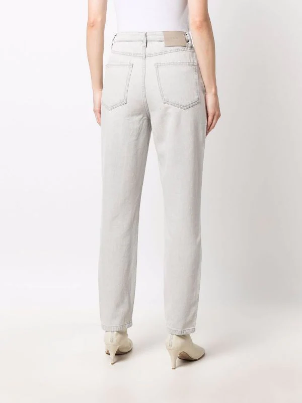 Taille haute, fermeture à zip et boutons sur le devant, passants de ceinture, cinq poches classiques, coupe boyfriend, patch logo sur l’arrière. Matière : coton.