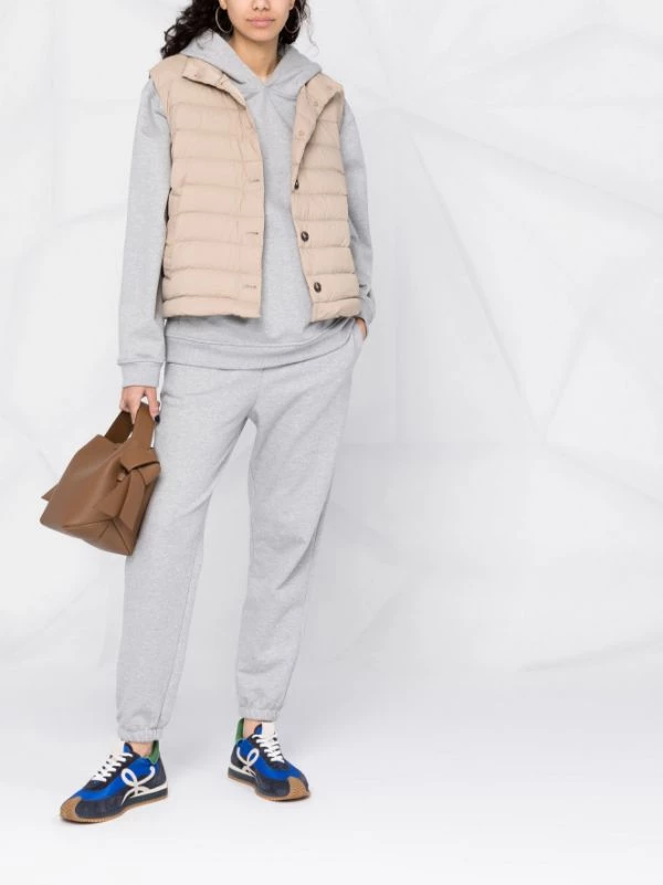 Col montant, boutonnière sur le devant, poches latérales fendues. Matière : duvet.