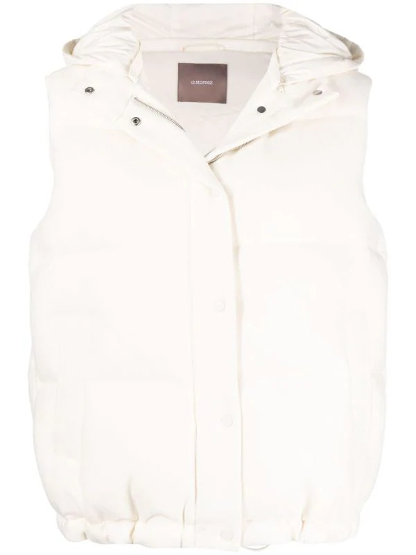 Design matelassé, capuche détachable, bouton pression et fermeture zippée sur le devant, deux poches latérales fendues, ourlet à lien de resserrage.