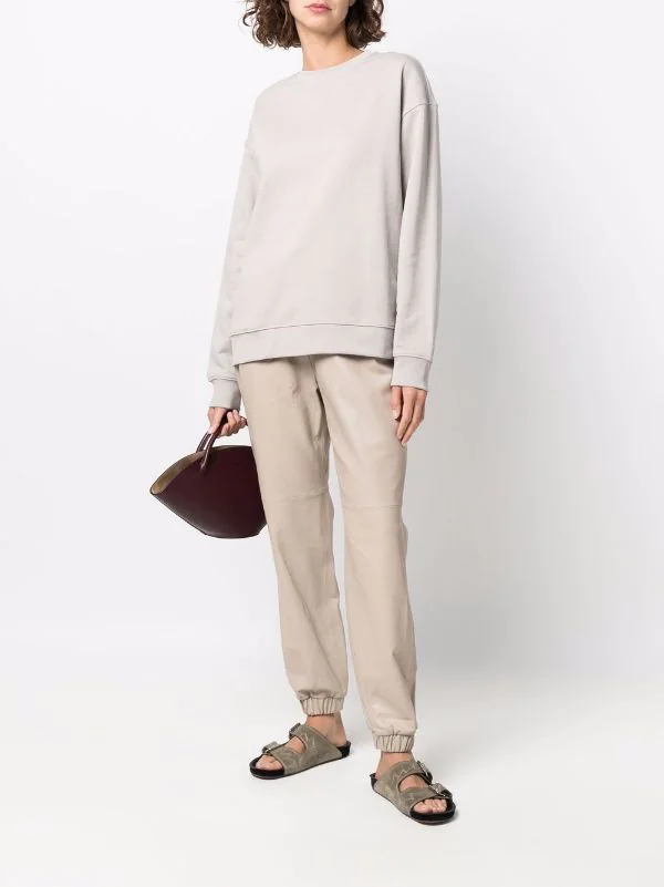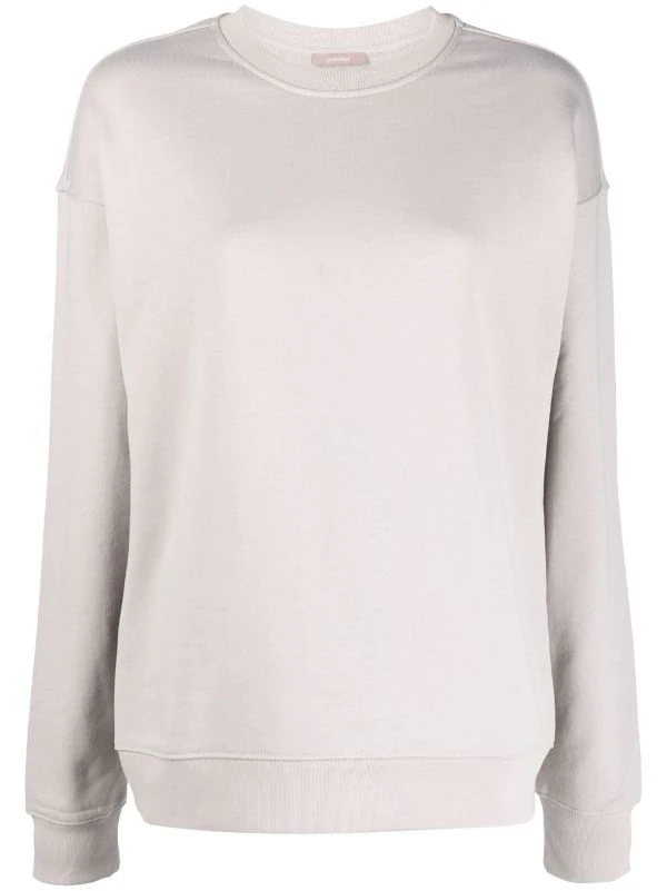Bordures nervurées, épaules tombantes, encolure ronde, manches longues, ourlet droit. Matière : coton.