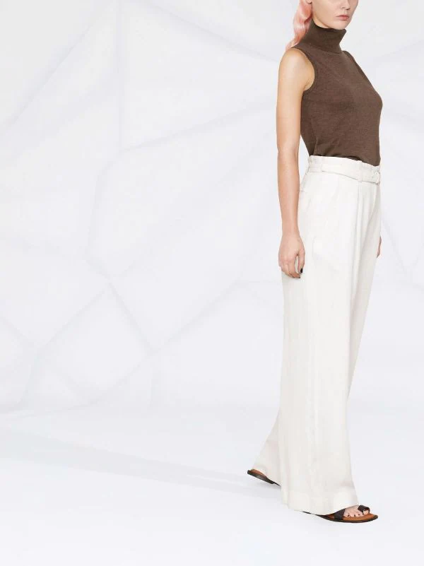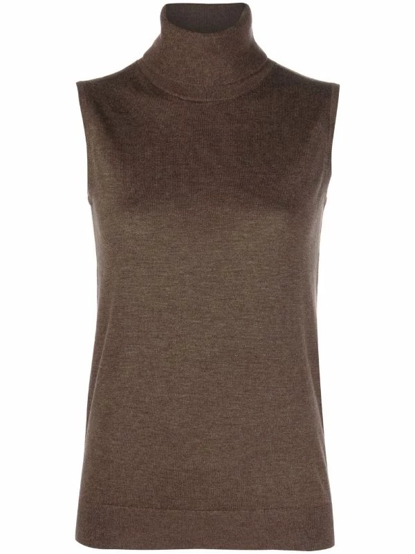 Design en maille, finitions nervurées, col roulé, design sans manches, ourlet droit.