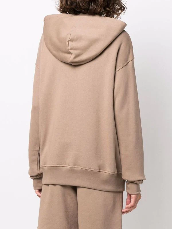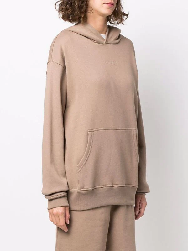Logo brodé sur la poitrine, capuche souple, poche plaquée sur le devant, épaules tombantes, manches longues. Matière : coton.