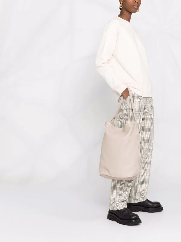 Texture grainée, anse ajustable, bordures repliées, fermeture magnétique dissimulée, pochette détachable. Matière : cuir.
