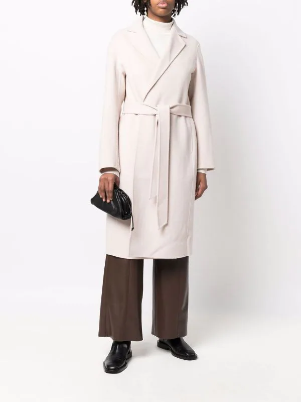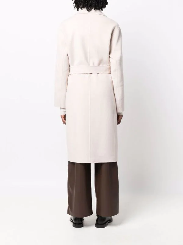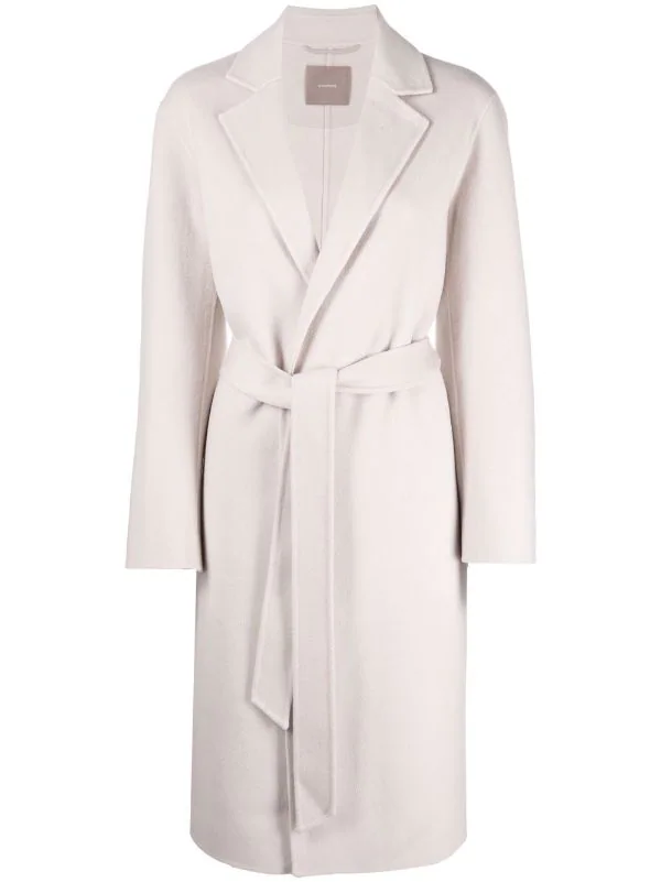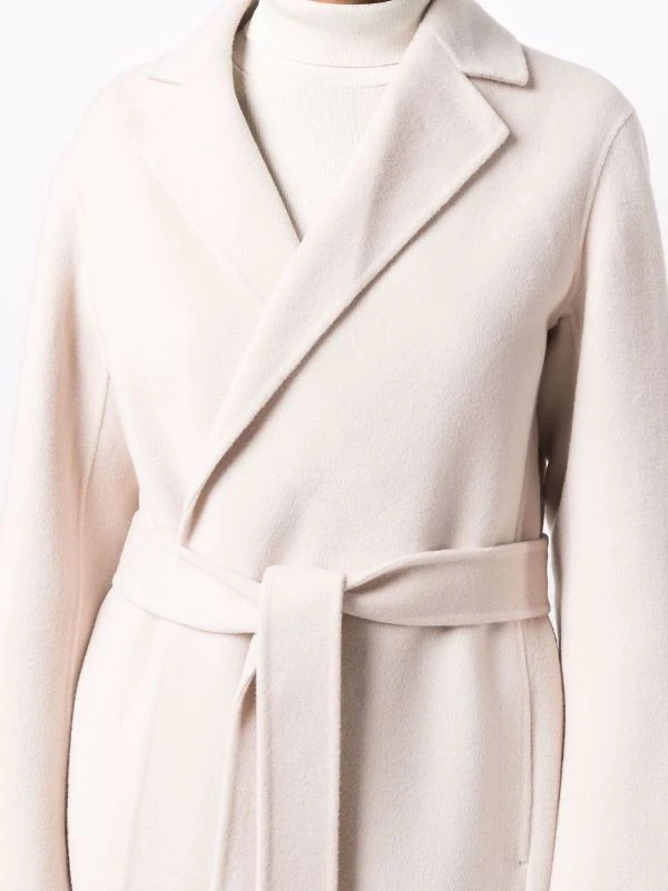 Revers crantés, taille ceinturée, deux poches passepoilées avant, manches longues. Matière : laine.
