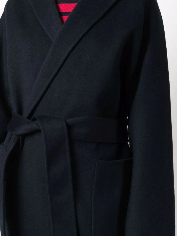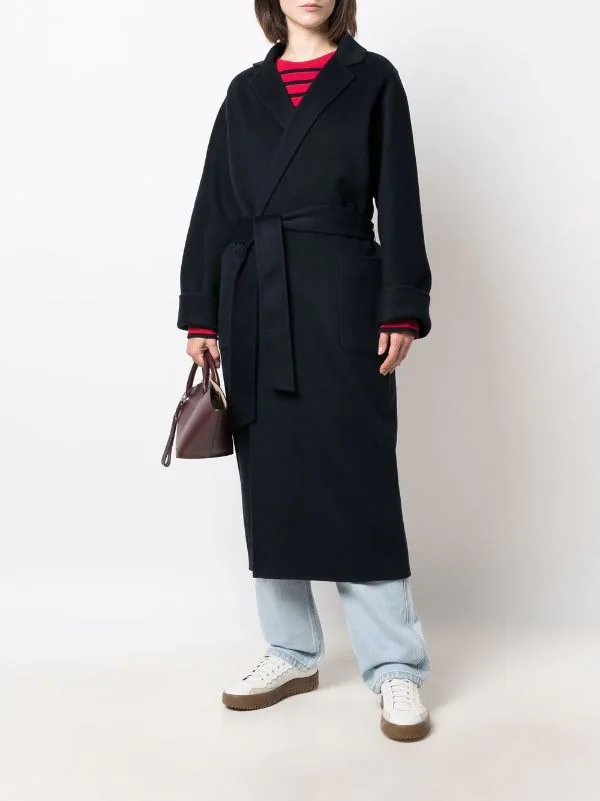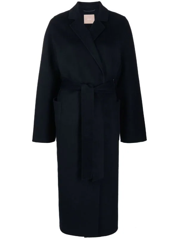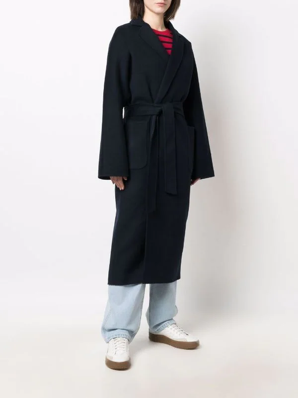Revers crantés, taille ceinturée, coupe mi-longue, deux poches plaquées. Matière : laine.