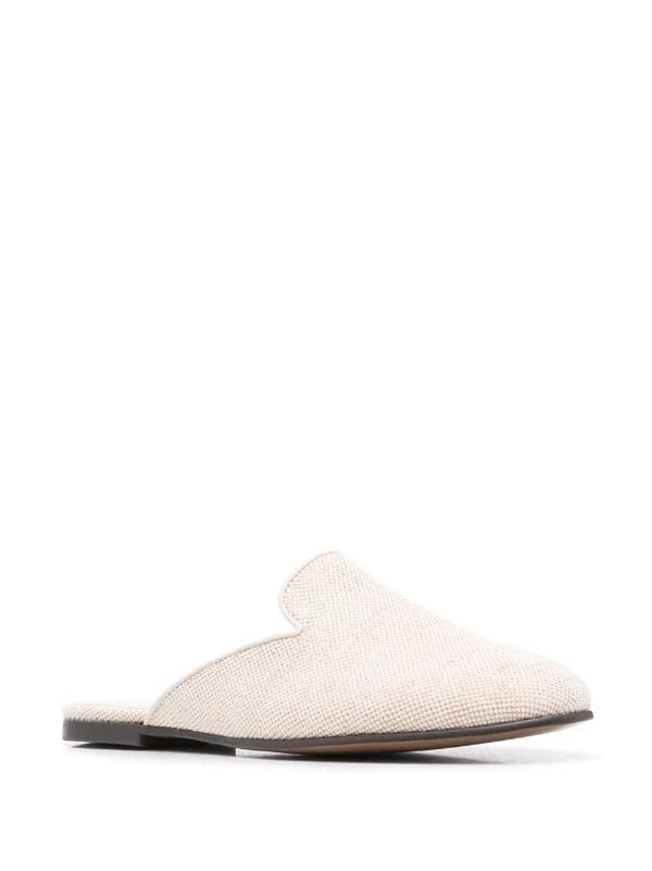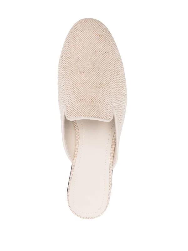 Texture grainée, bout en amande, design à enfiler, semelle intérieure à logo, semelle plate, talon ouvert. Matière : cuir.