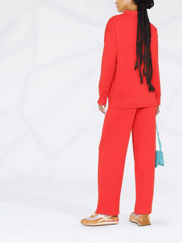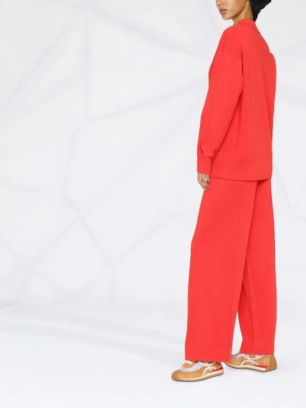 Effet froissé, taille haute, deux poches latérales fendues, coupe ample. Couleur : rouge.