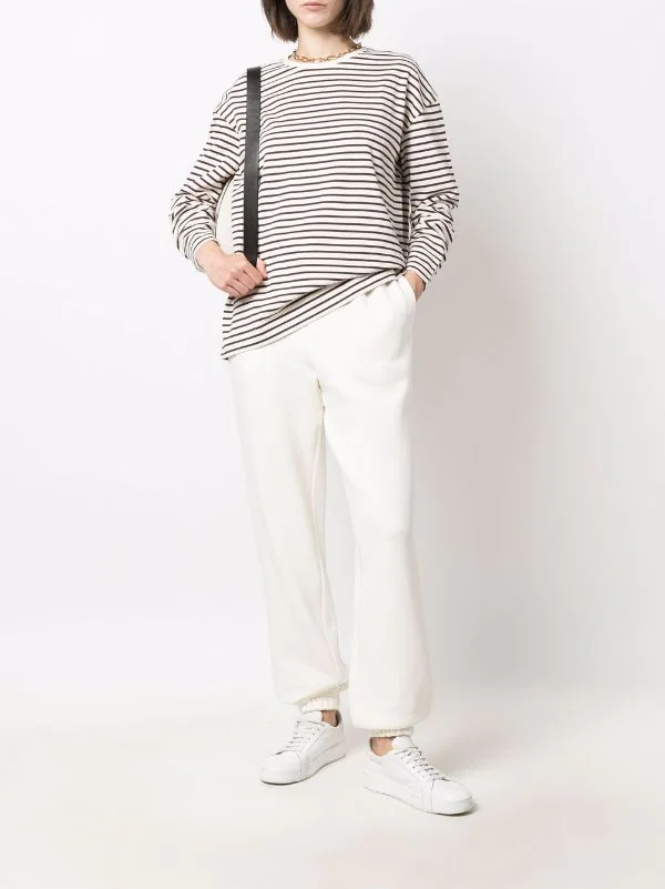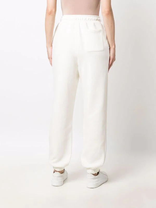 Taille élastique à lien de resserrage, poches latérales fendues, chevilles élastiques, poche arrière plaquée. Couleur : blanc.