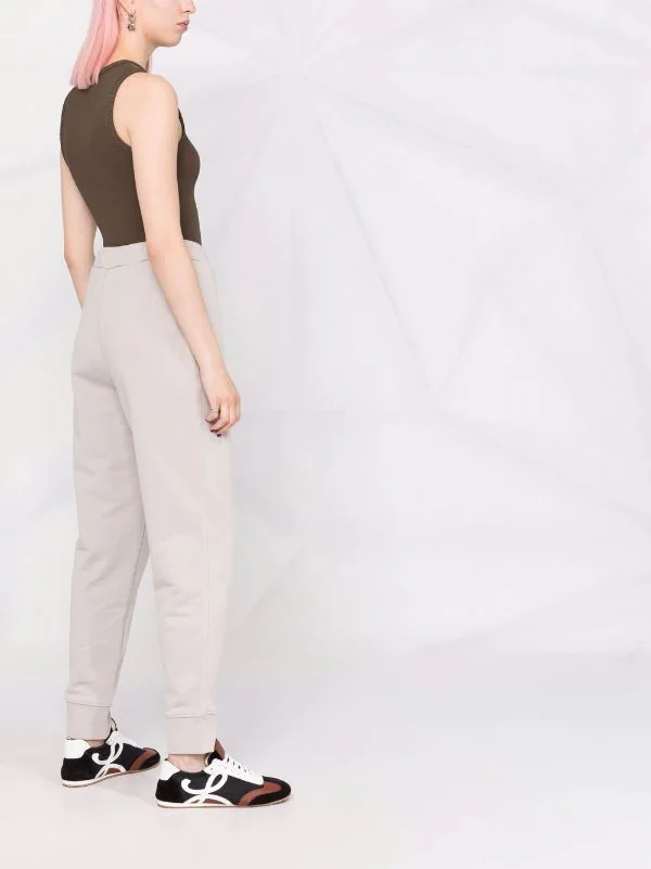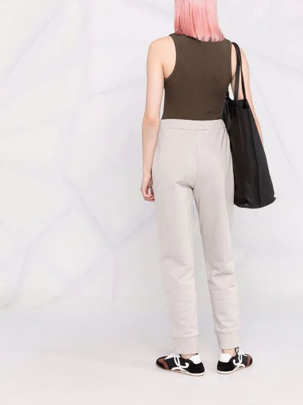 Taille élastique à lien de resserrage, deux poches latérales fendues, coupe fuselée. Couleur : gris. Matière : coton.