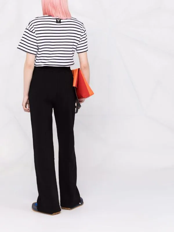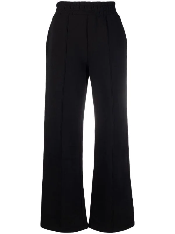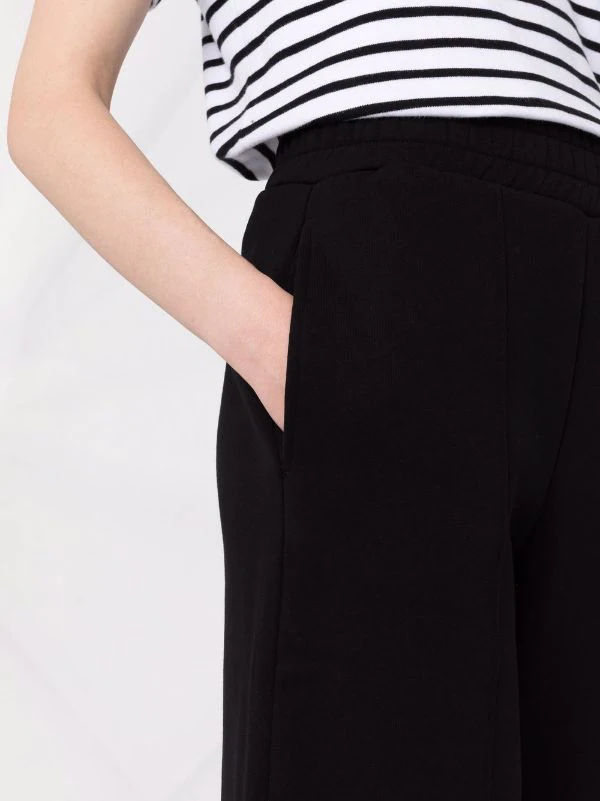 Ceinture élastique, coutures apparentes, deux poches latérales fendues, coupe droite. Couleur : noir. Matière : coton mélangé.
