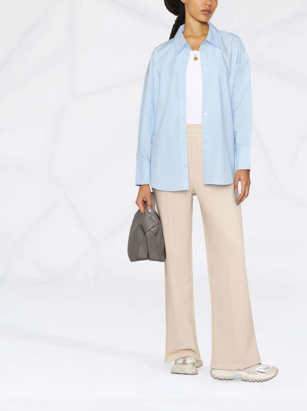 Ceinture élastique, coutures apparentes, deux poches latérales fendues, coupe droite. Matière : coton mélangé.