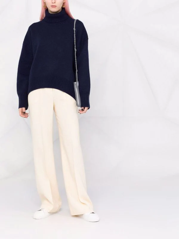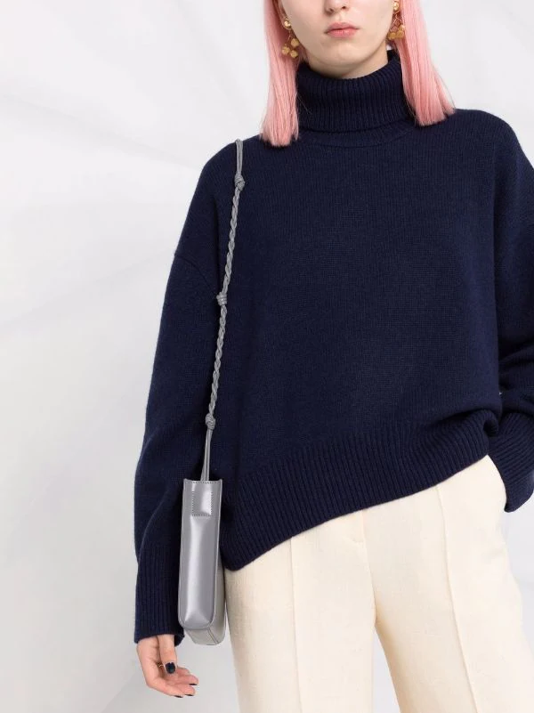 Design en maille, col roulé, épaules tombantes, manches longues, poignets nervurés, ourlet nervuré.