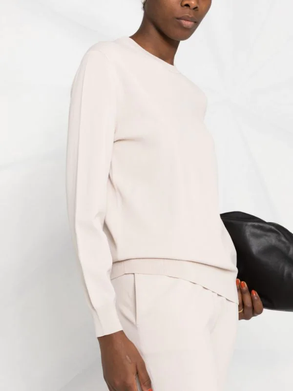 Encolure ras du cou, manches longues, ourlet droit, bord en maille côtelée.