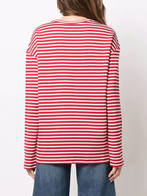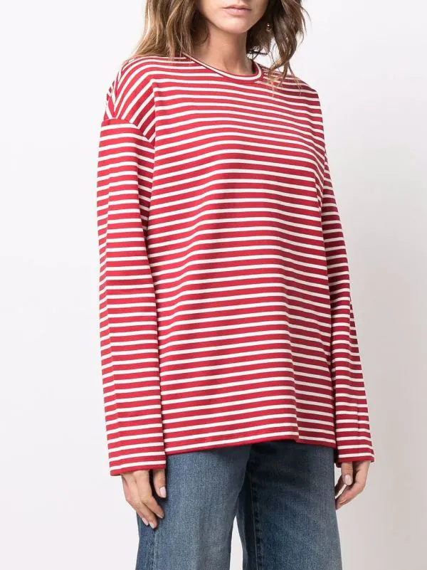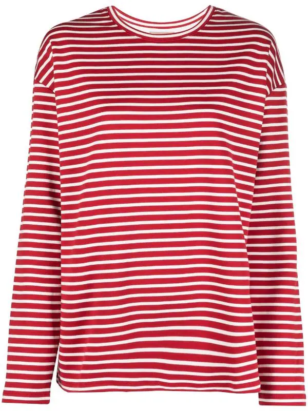 Rayures horizontales imprimées, encolure ronde, manches longues, ourlet droit, construction stretch. Couleur : rouge. Matière : coton Supima.