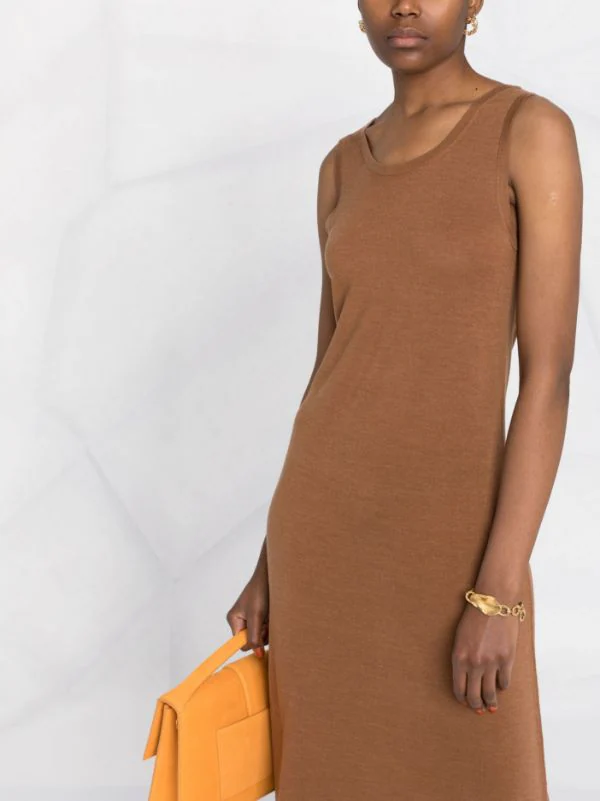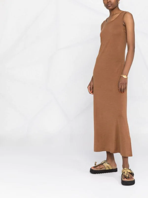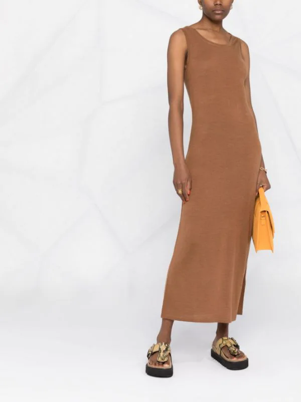 Encolure ronde, design sans manches, décolleté arrondi dans le dos, coupe longue.