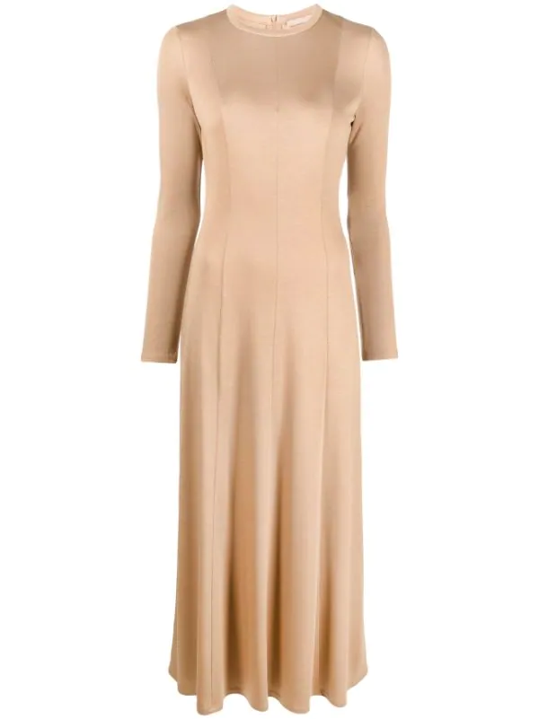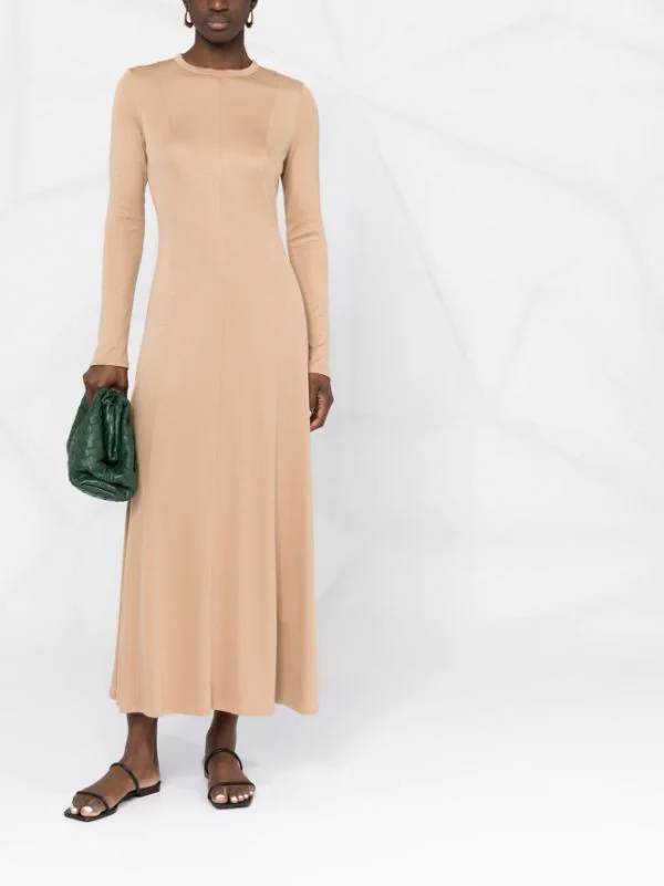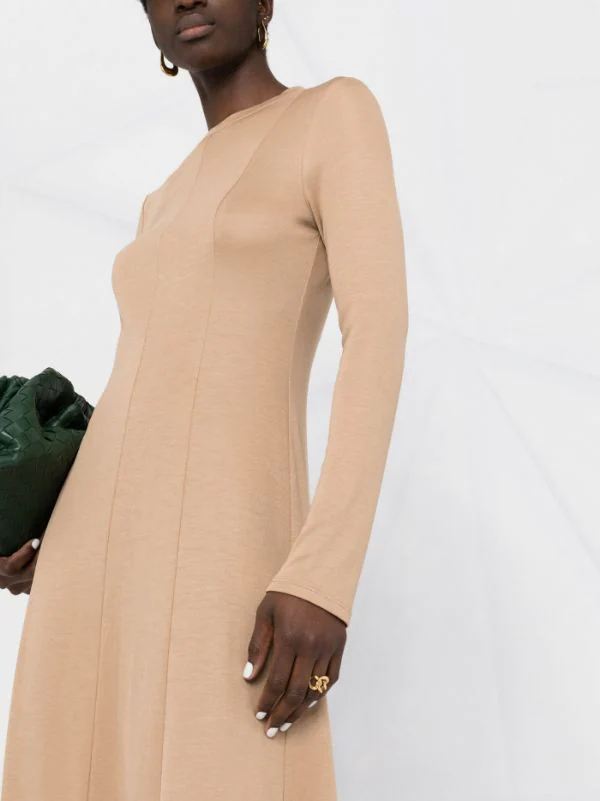 Manches longues, encolure ronde, coupe longue, jupe plissée, construction stretch.