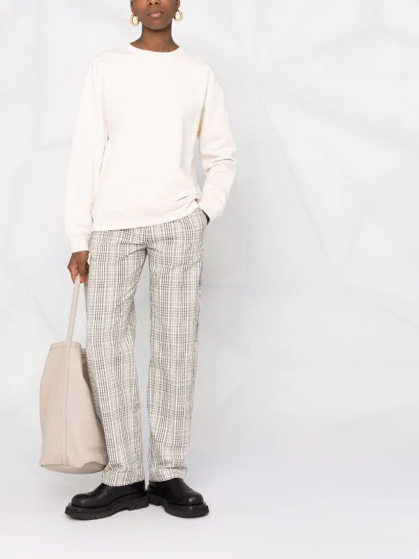 Encolure ras du cou, épaules tombantes, manches longues, ourlet droit. Matière : coton.