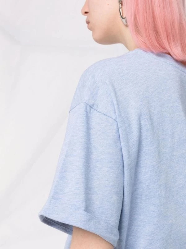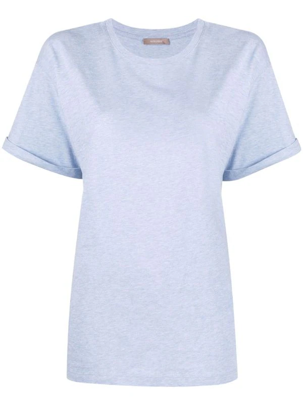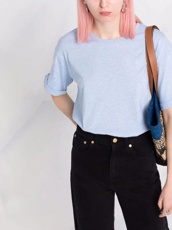Encolure ras du cou, épaules tombantes, manches courtes, ourlet droit. Matière : coton.