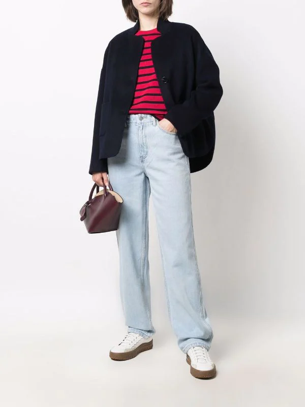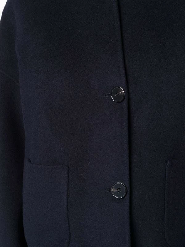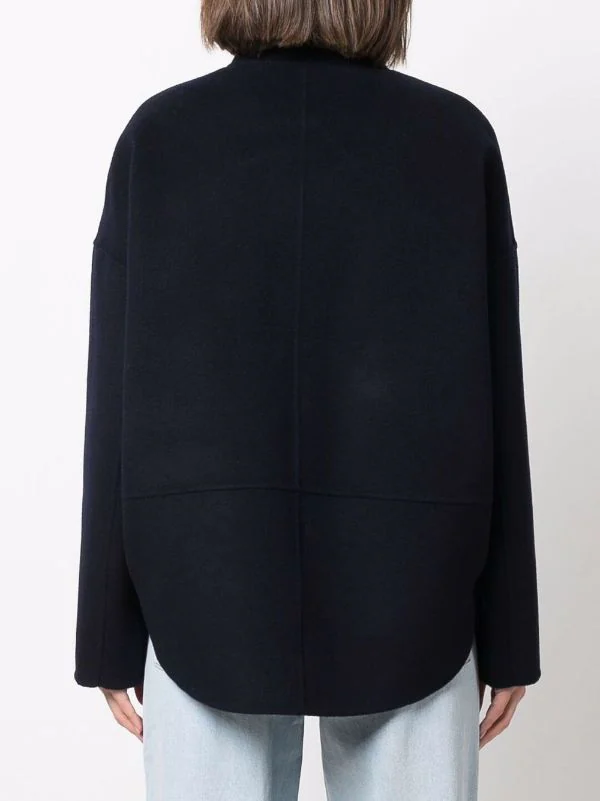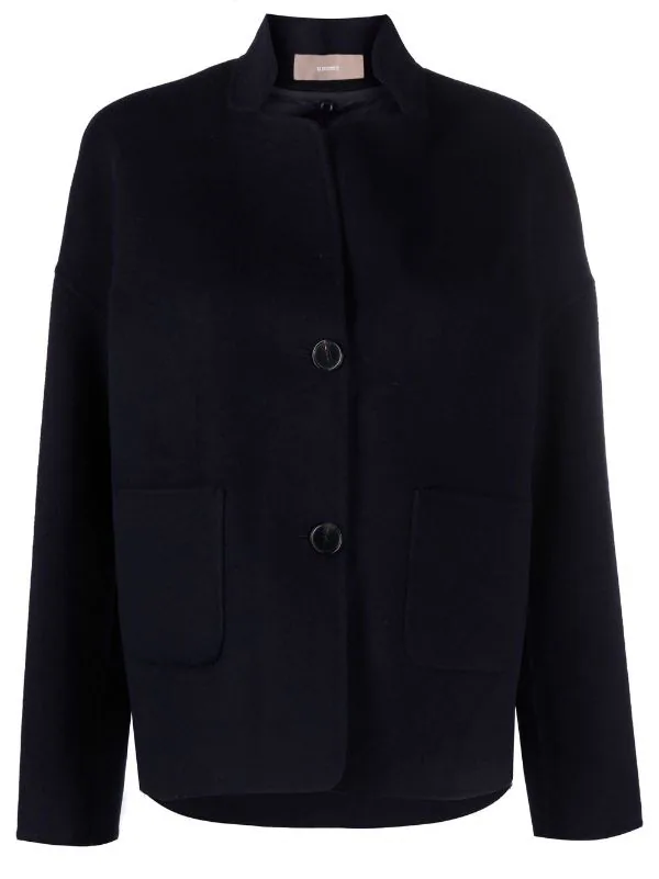 Col montant, fermeture zippée devant, épaules tombantes, manches longues, deux poches plaquées.