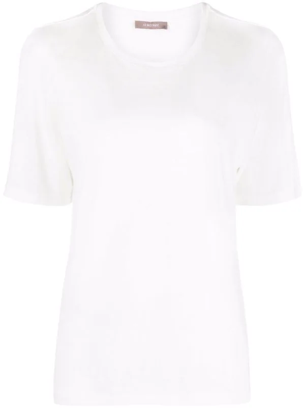 Design ton sur ton, encolure ronde, manches courtes. Couleur : blanc. Matière : coton.