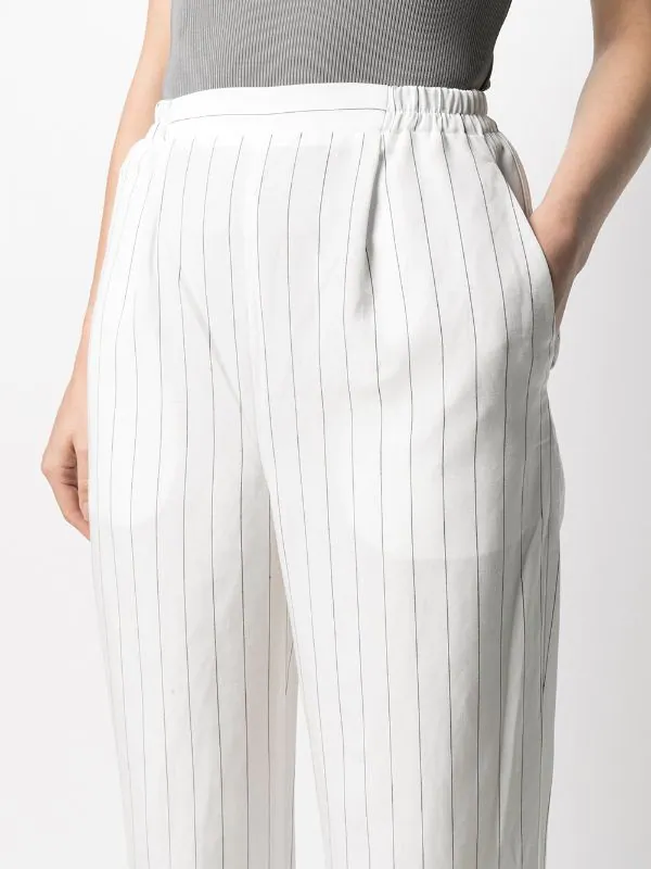 Ceinture élastique, deux poches latérales passepoilées, coupe ample. Couleur : blanc.