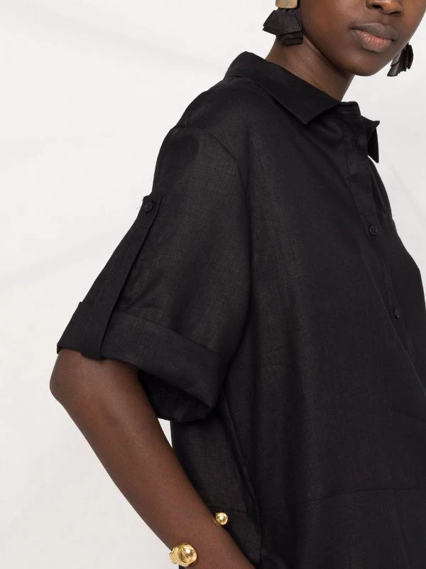 Col classique, patte de boutonnage sur le devant, poche passepoilée sur la poitrine, manches courtes, ourlet retroussé, ourlet droit. Couleur : noir. Matière : lin. POSITIVELY CONSCIOUS : au moins 50 % du matériau principal dont se compose ce produit répond à nos critères écoresponsables. En d’autres termes, il s’agit soit d’une matière biologique, recyclée ou surcyclée, soit d’une matière étant reconnue de manière indépendante comme meilleure pour l’environnement (comme le lin, la ramie, le TENCEL™, etc.).